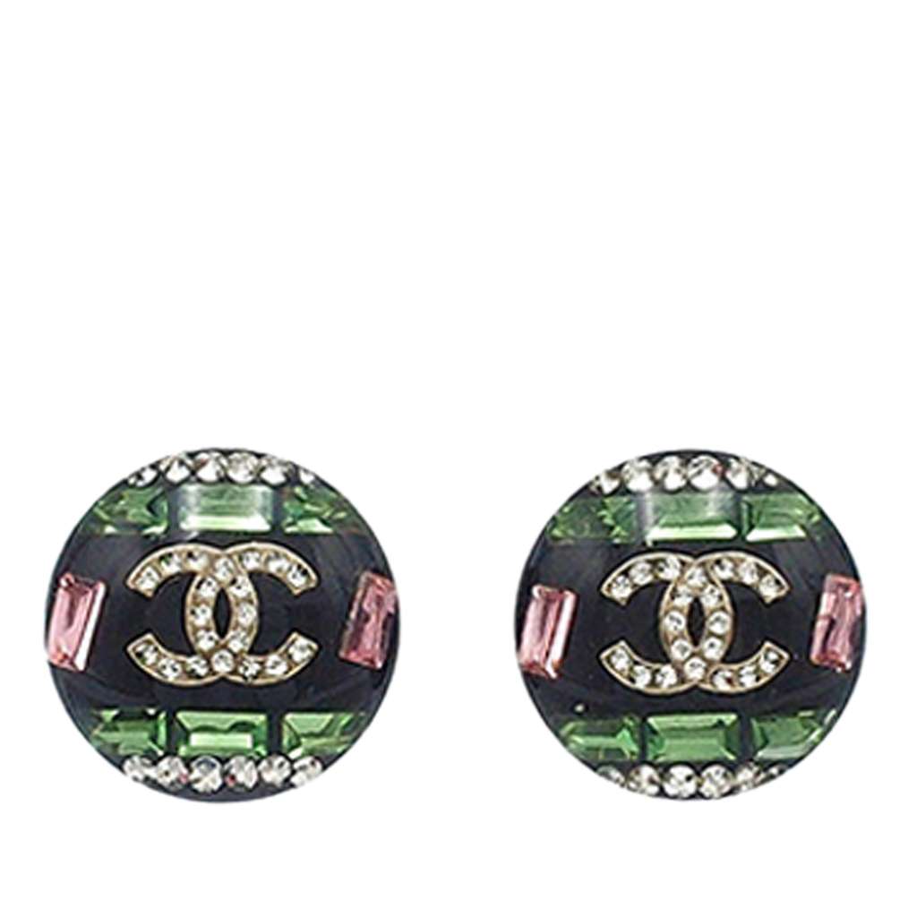 These earrings feature a resin body with rhinestone details, and push back closures.
