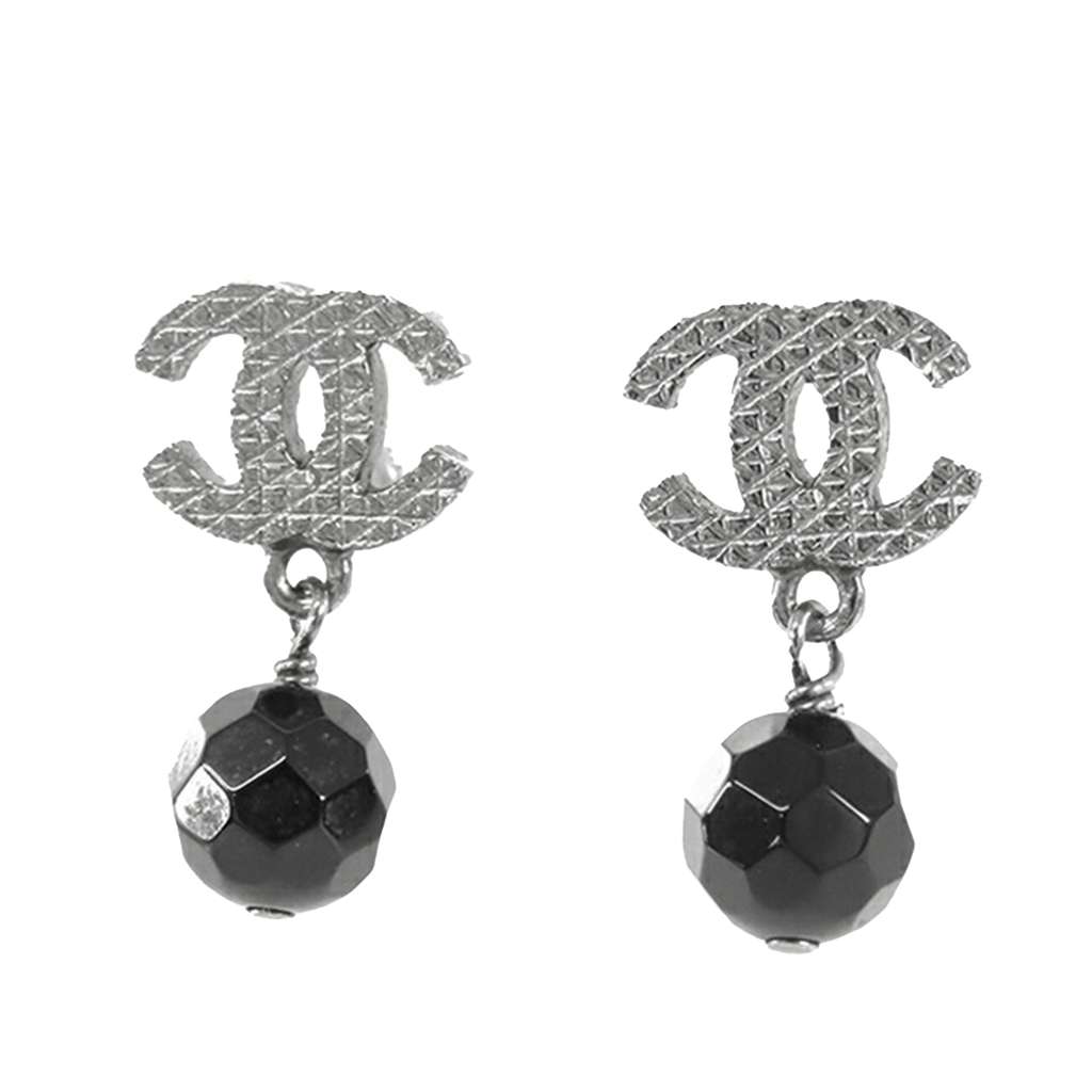 These earrings feature a silver tone metal body, a bead drop, and a push back closure.