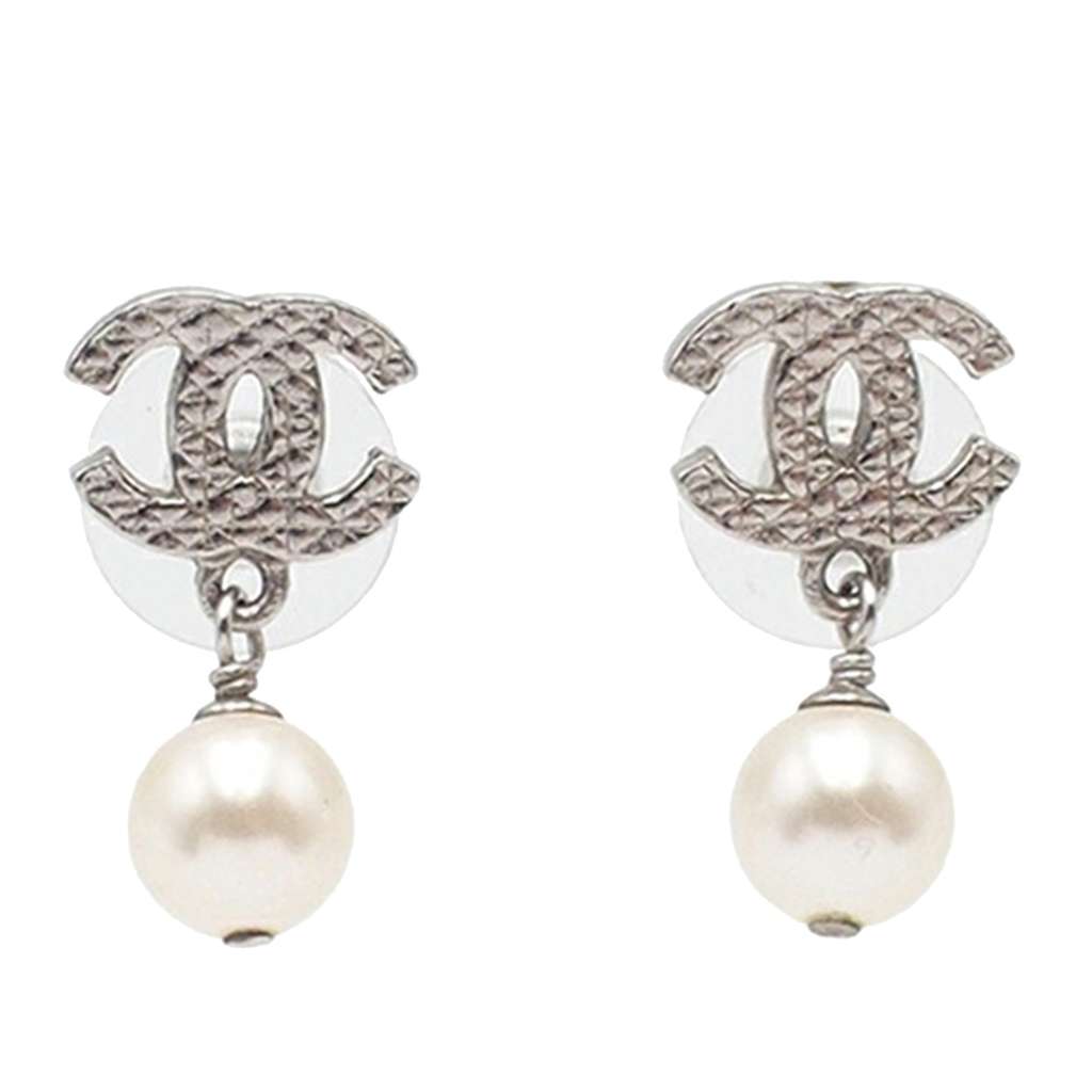 These earrings features a silver-tone metal body, a faux pearl drop, and push back closure.