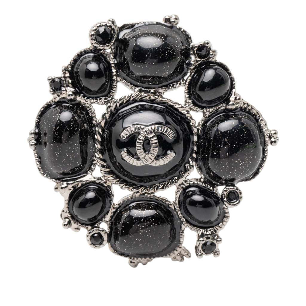 Chanel CC Silver Plated Gripoix Pin Brooch Black | Pre-Loved