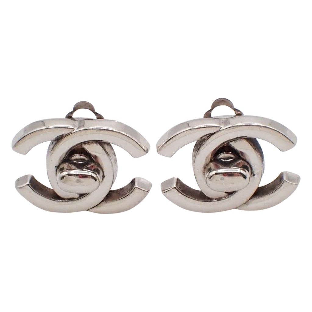 Chanel CC Turnlock Clip-On Earrings Silver | Pre-Loved Luxur