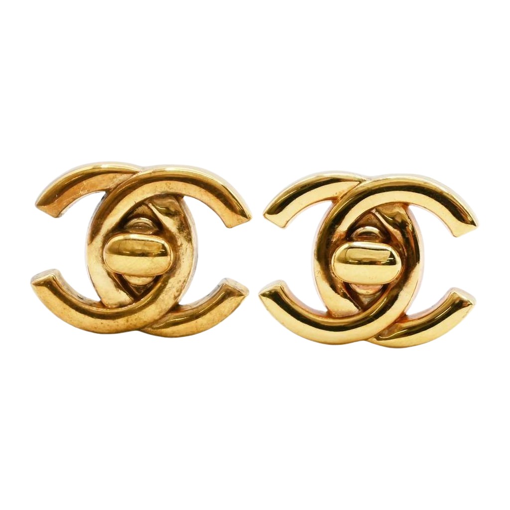Chanel CC Turnlock Stud Earrings Gold | Pre-Loved Luxury at