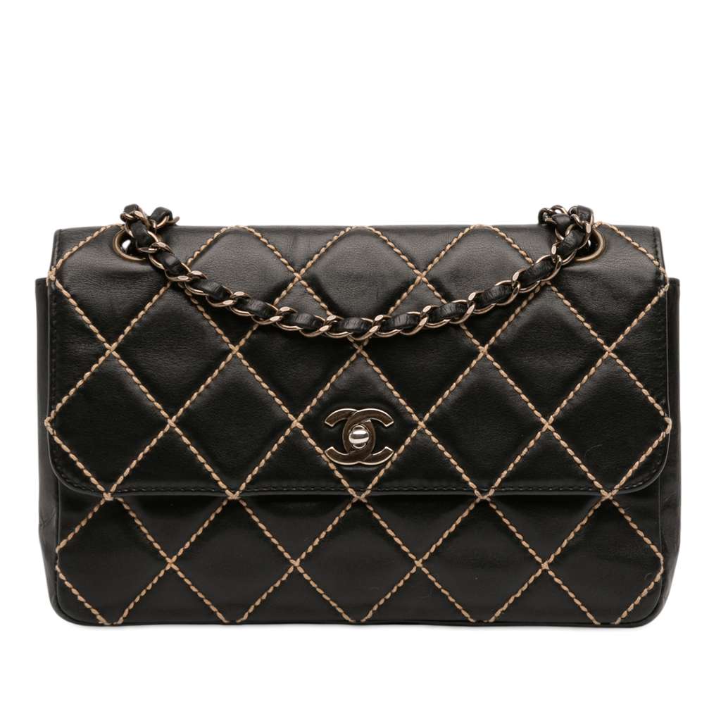 Chanel CC Wild Stitch Lambskin Flap Black Medium Leather