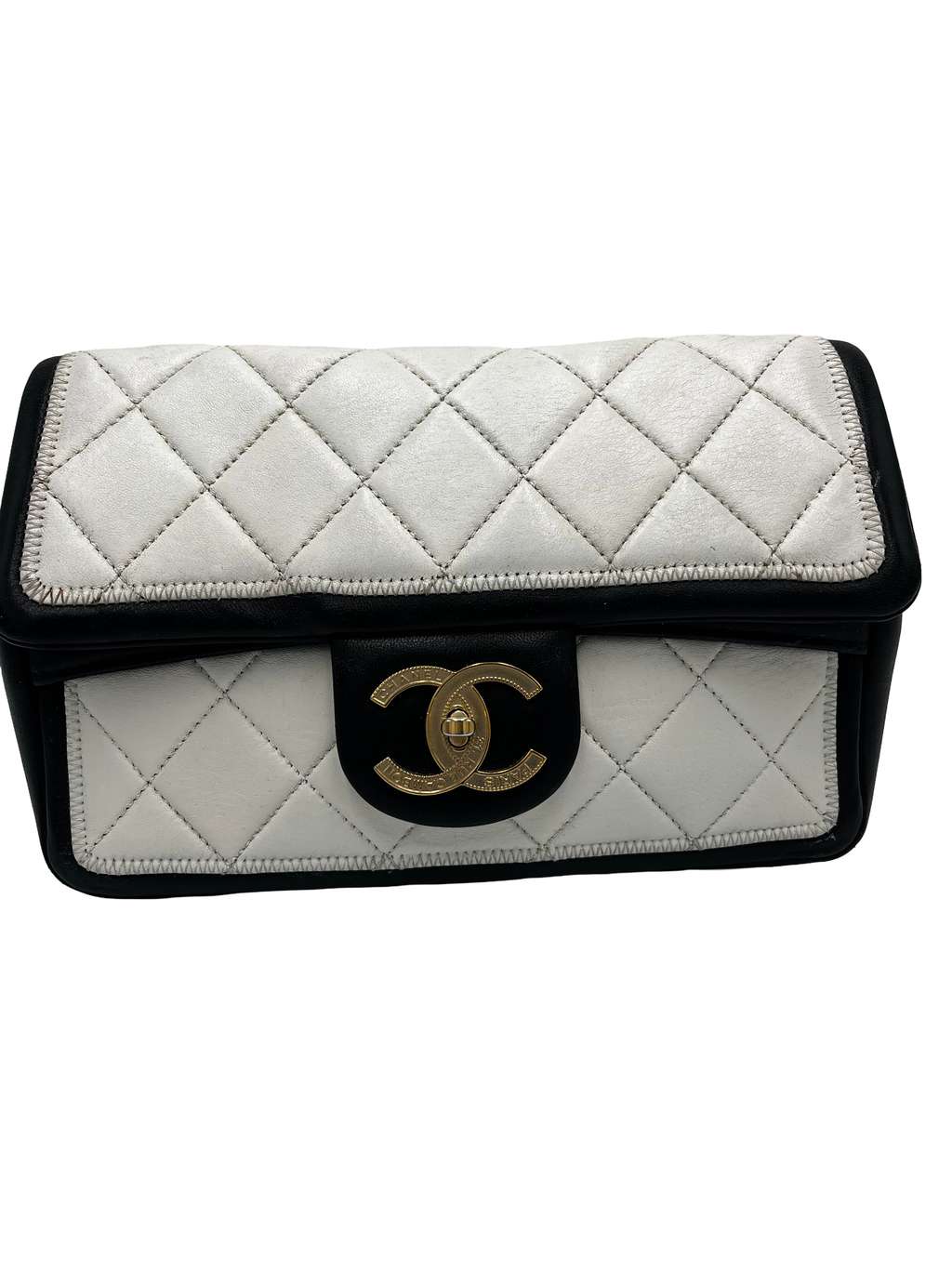 Chanel Chanel Matelassé Cuir Noir White Small Leather