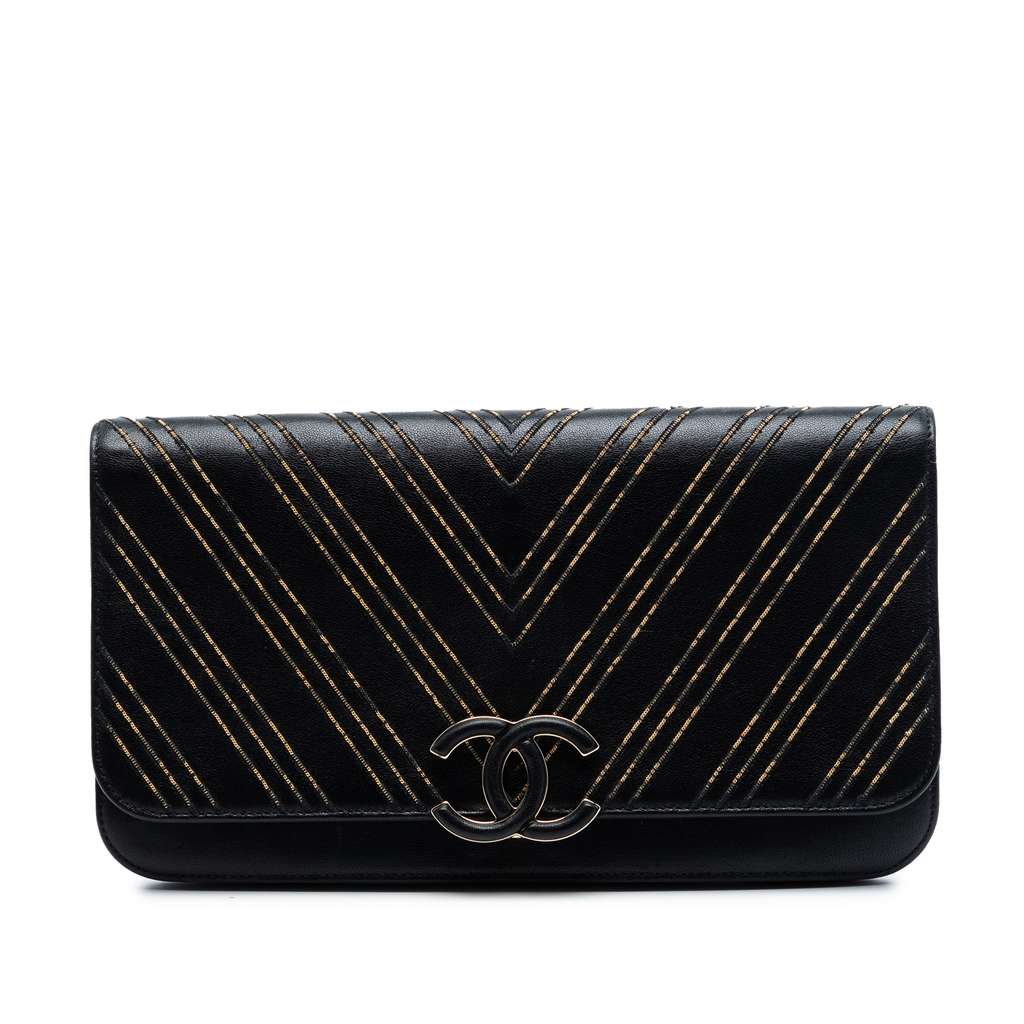 Chanel Chevron Sheepskin Subtle Clutch Black Large Leather