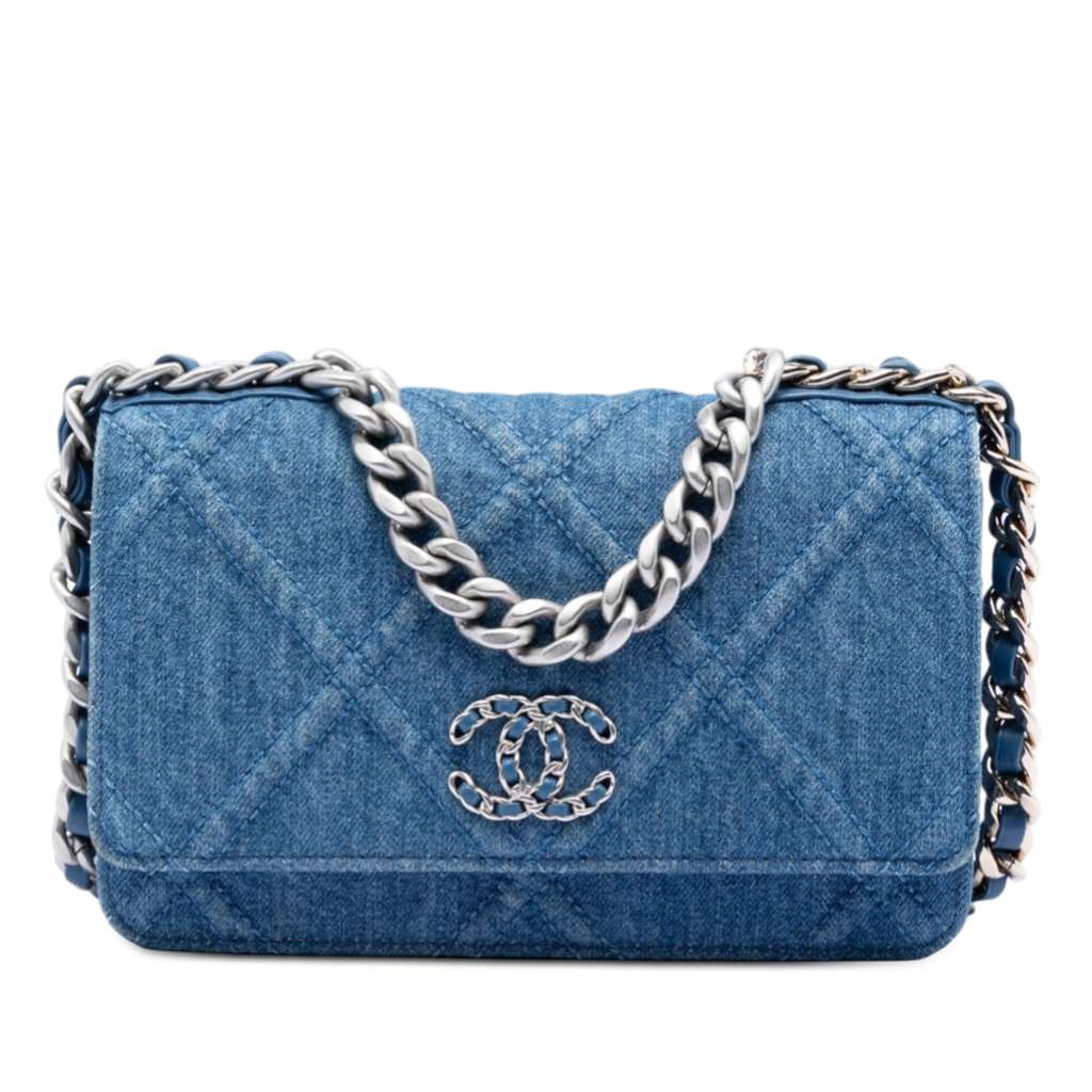 Chanel Denim 19 Flap Wallet On Chain Blue Mini Denim