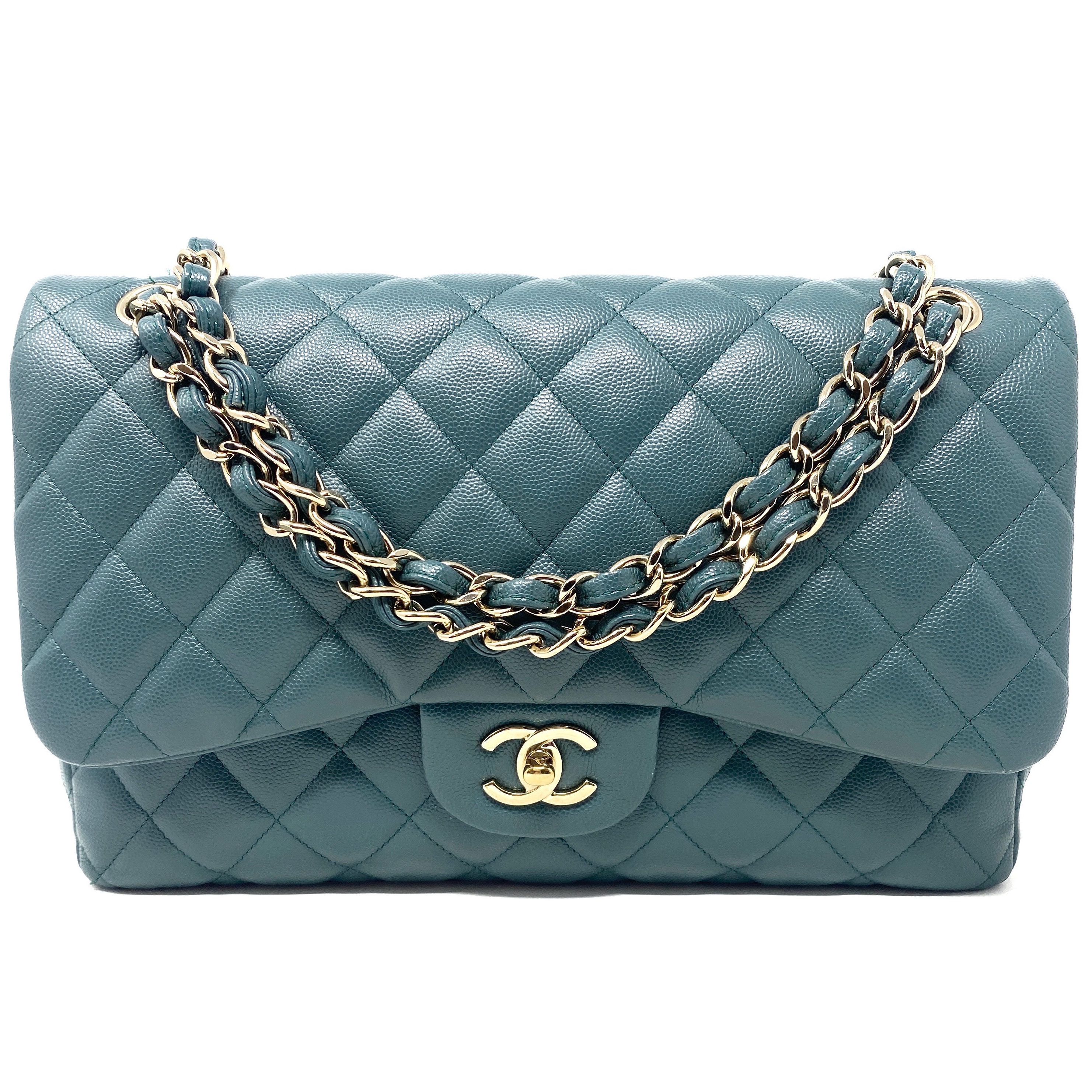 Chanel Double Flap Bag Green Large Leather | Pre-Loved Luxur