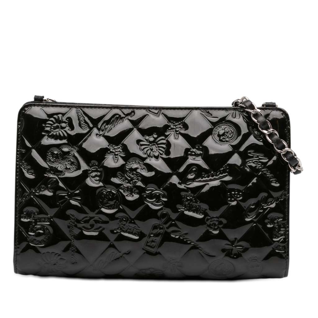 Chanel Embossed Patent Lucky Symbols Pochette Black Small Le