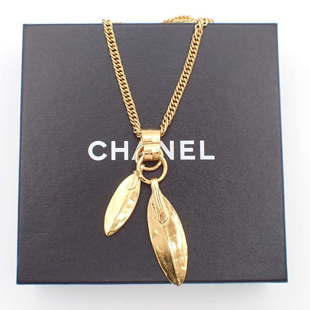 Chanel Feather CC Pendant Necklace Gold | Pre-Loved Luxury a