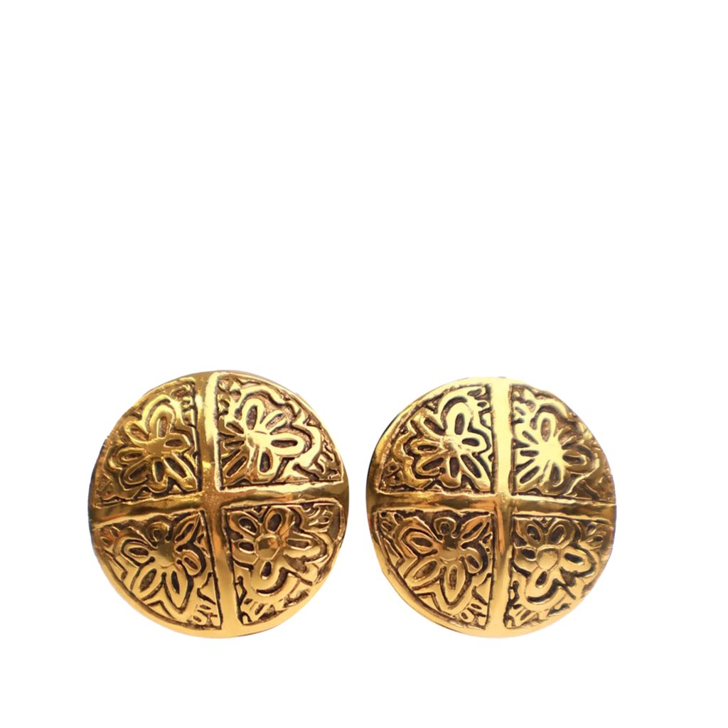 These earrings feature a gold-tone metal body and a clip on closure.