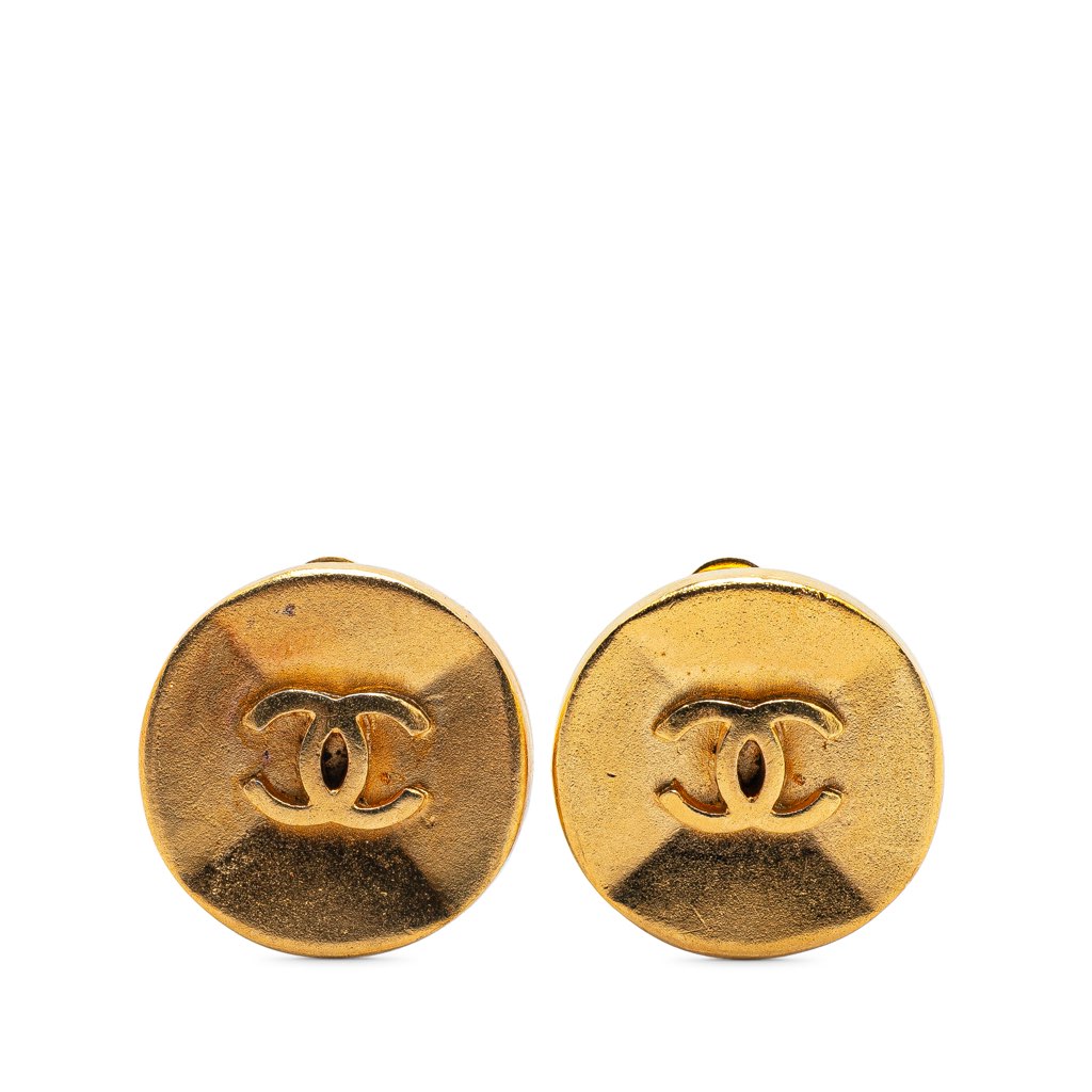 These earrings features a gold plated metal body and clip on earrings.