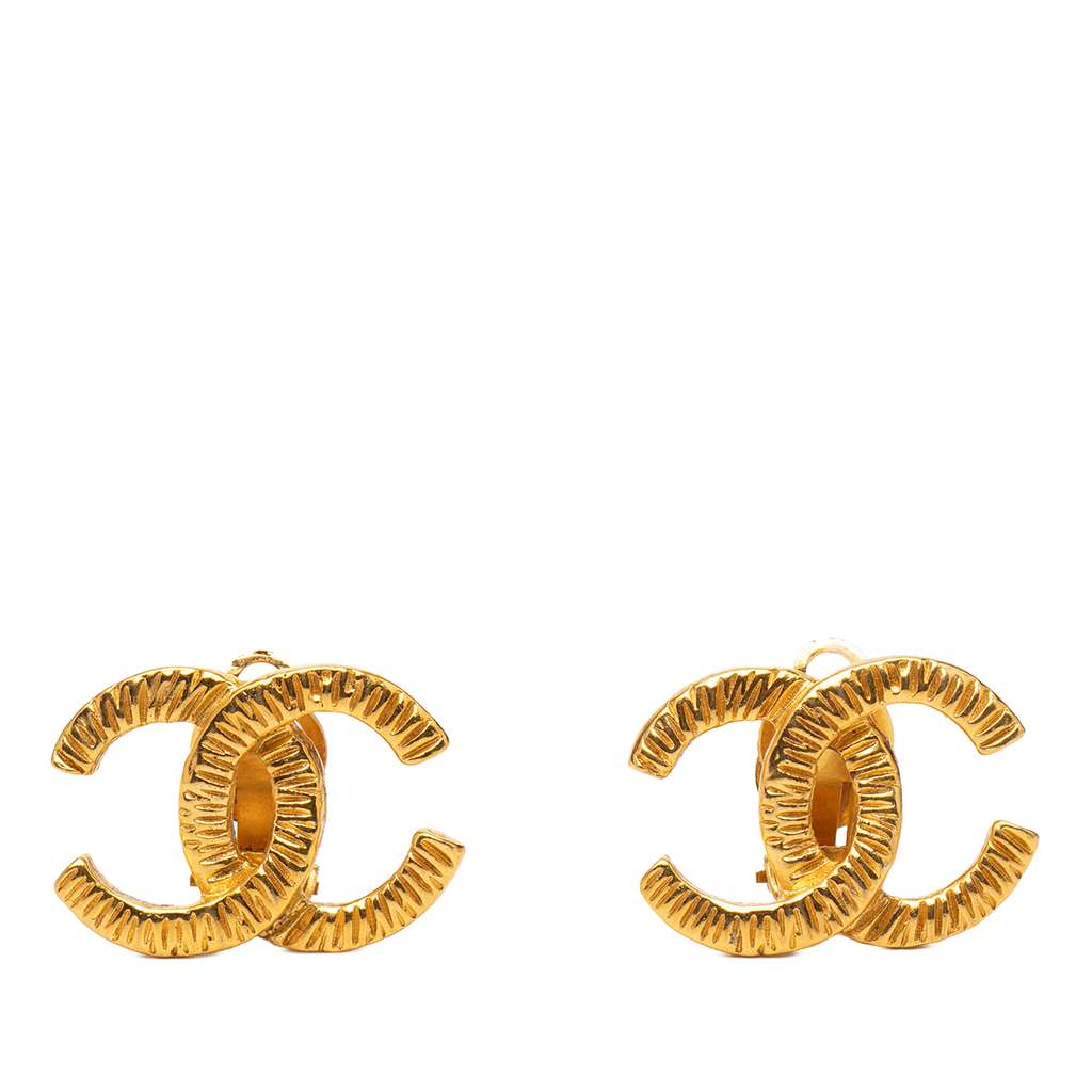 Chanel Gold Plated CC Clip On Earrings Gold Metal | Pre-Love