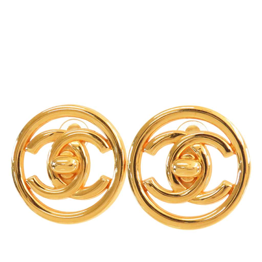 These earrings feature a gold-plated metal body and clip-on closures.