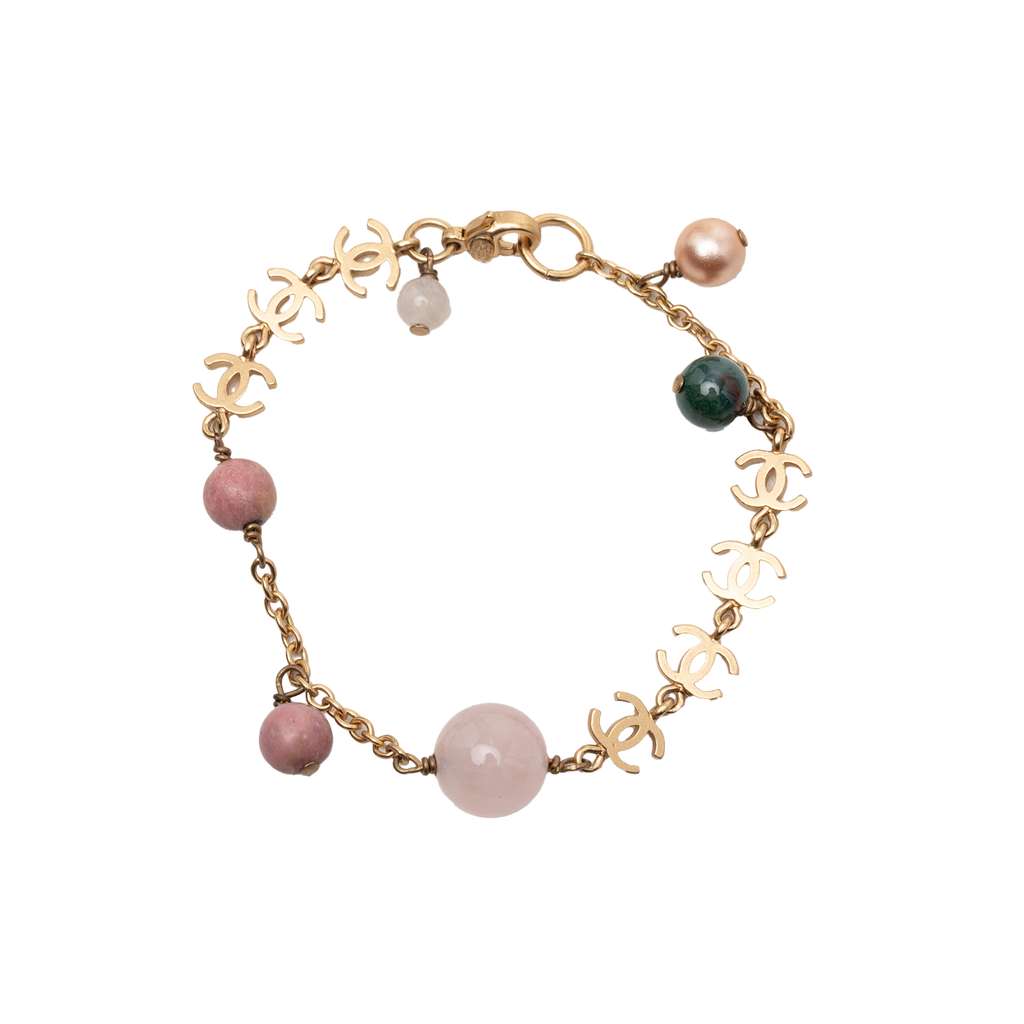 Chanel Gold Plated CC Faux Pearl Bracelet Gold Metal