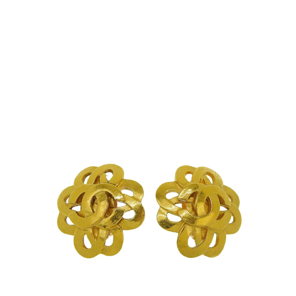 These earrings features a gold-plated metal body and clip-on closures.