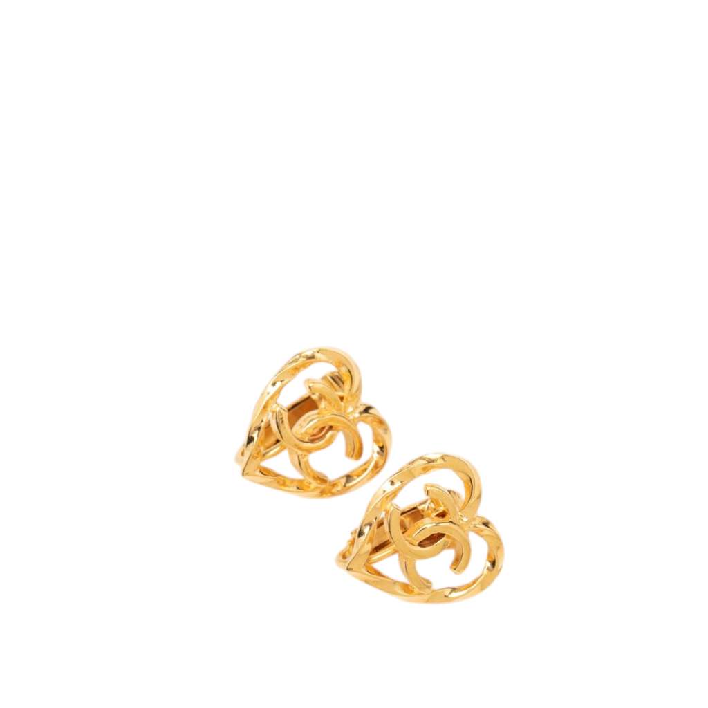 Chanel Gold Plated CC Heart Clip On Earrings Gold Metal