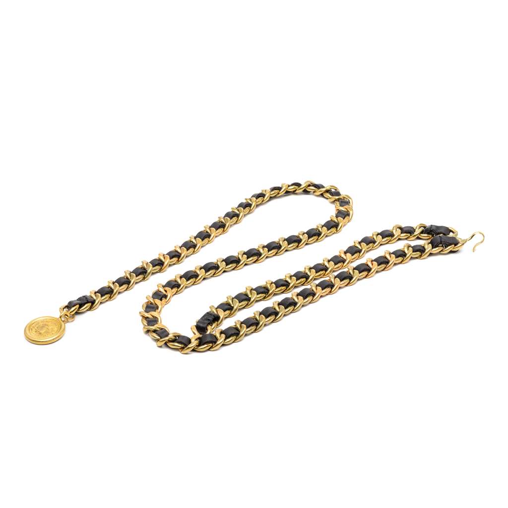 Chanel Gold Plated CC Leather Woven Medallion Chain Belt Gol