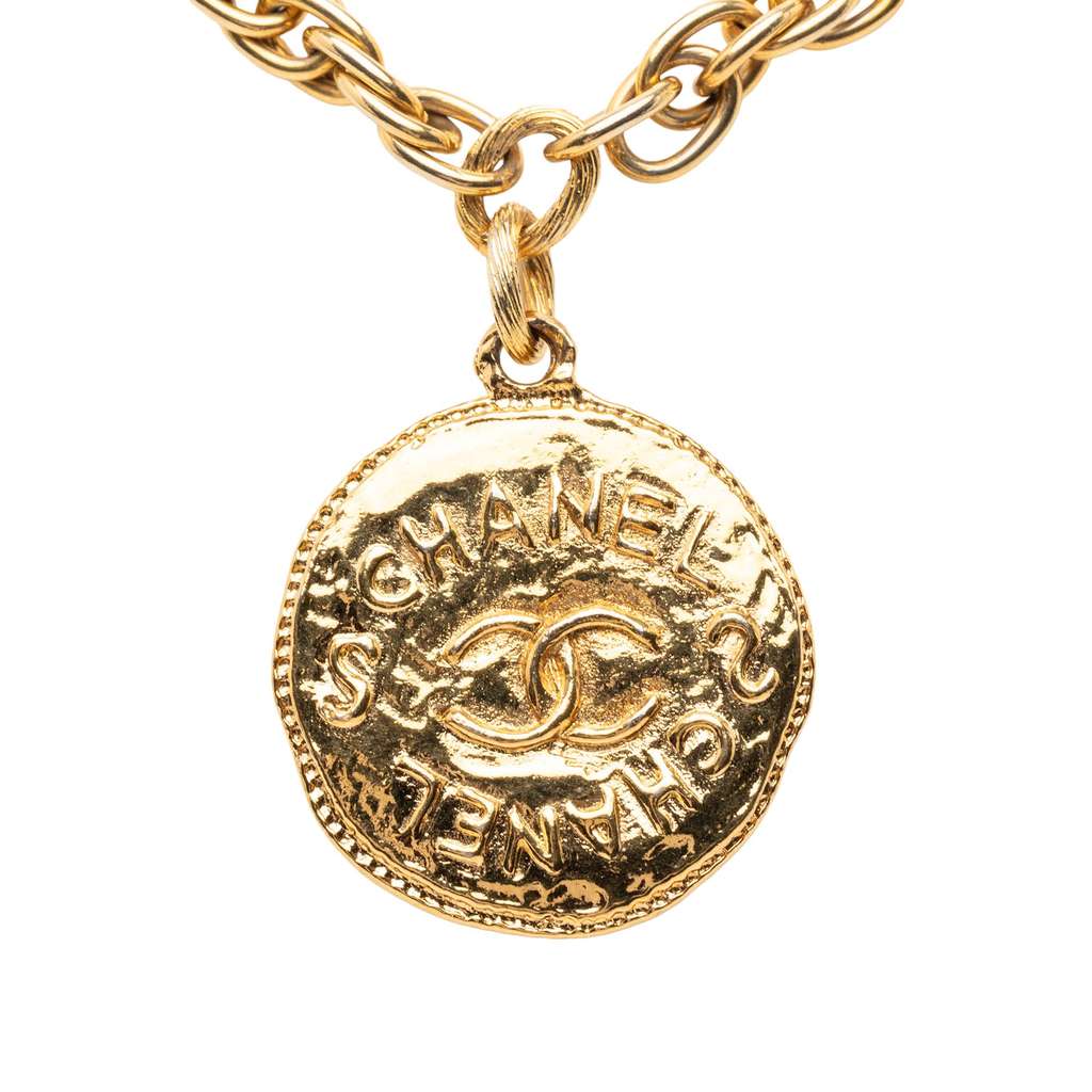 This necklace features a gold-tone metal body, and a spring ring closure.