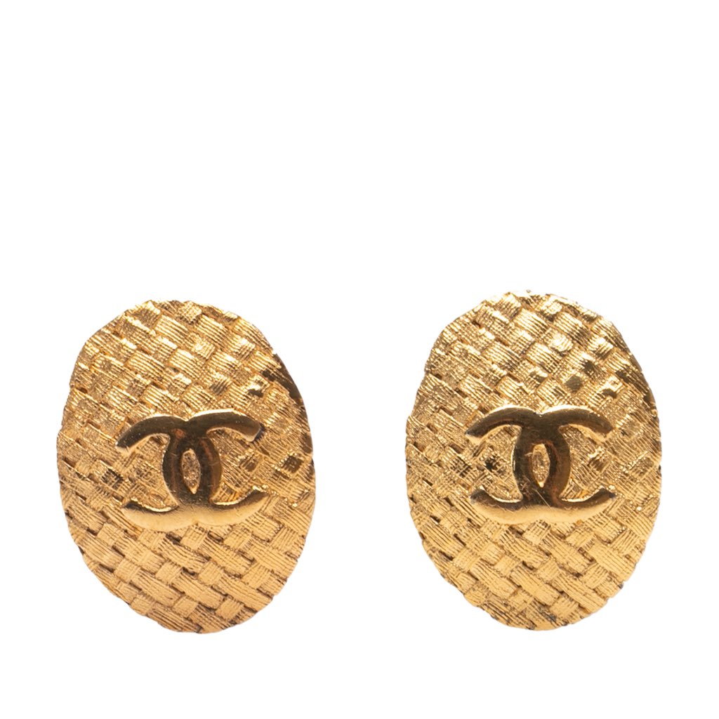 These earrings feature a gold-plated metal body and clip on closure.