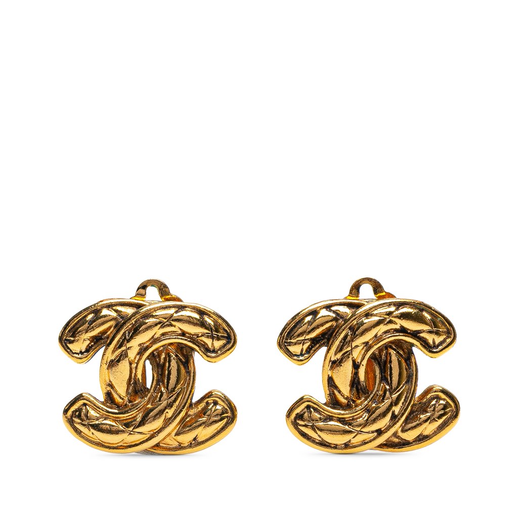These earrings features a gold plated metal body and clip on earrings.