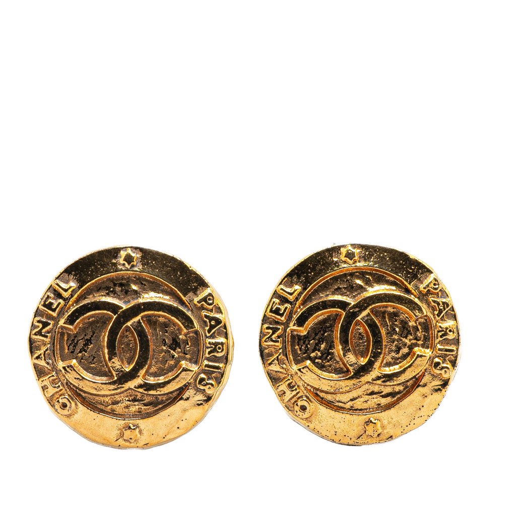 These earrings feature a gold-plated body and clip-on closure.
