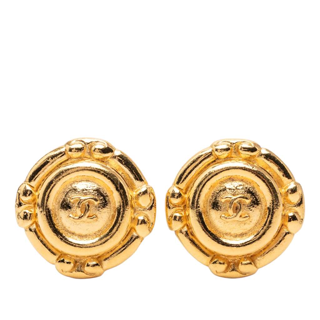 chanel cc gold plated round clip on earrings