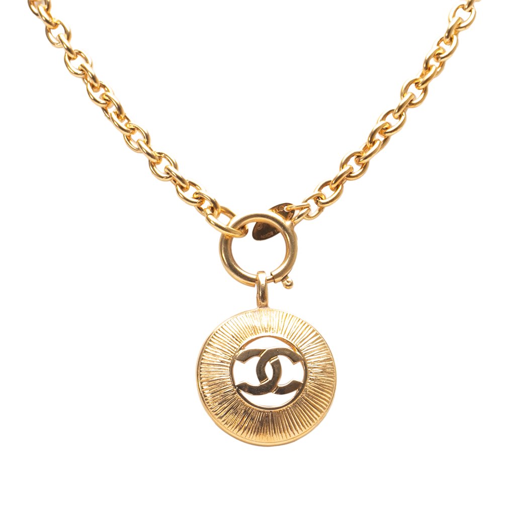 This necklace features a gold-tone pendant and chain and a spring ring closure.