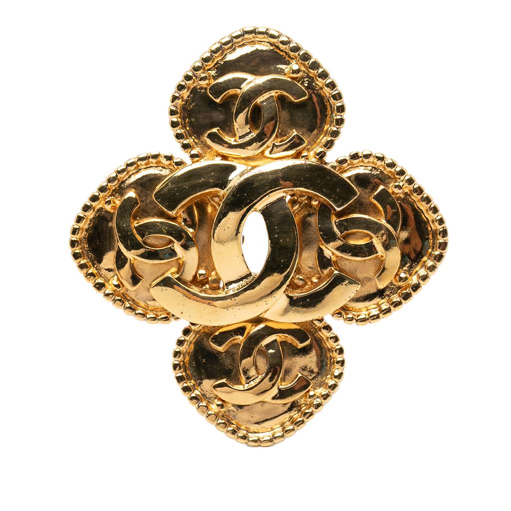 Gold Plated Coco Mark Flower Brooch