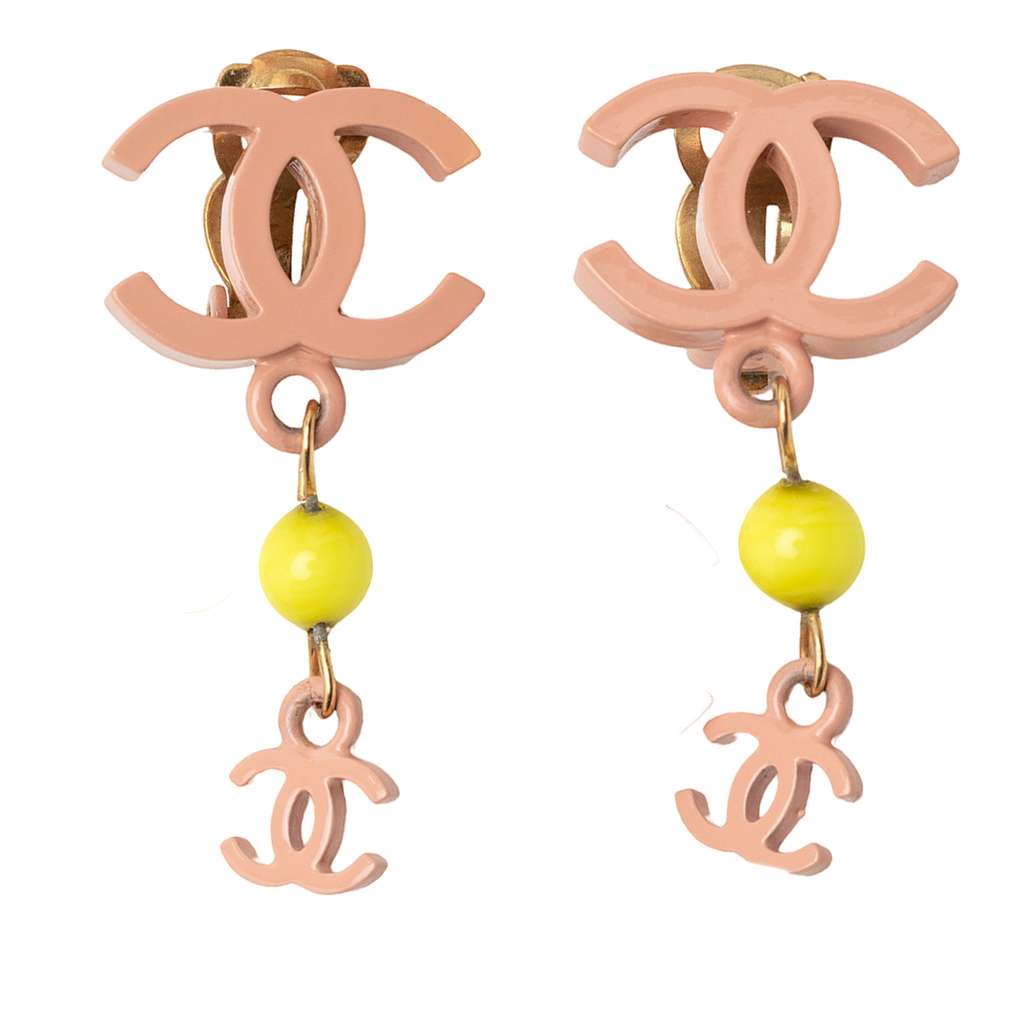 Chanel Gold Plated Enamel CC Drop Clip-On Earrings Pink
