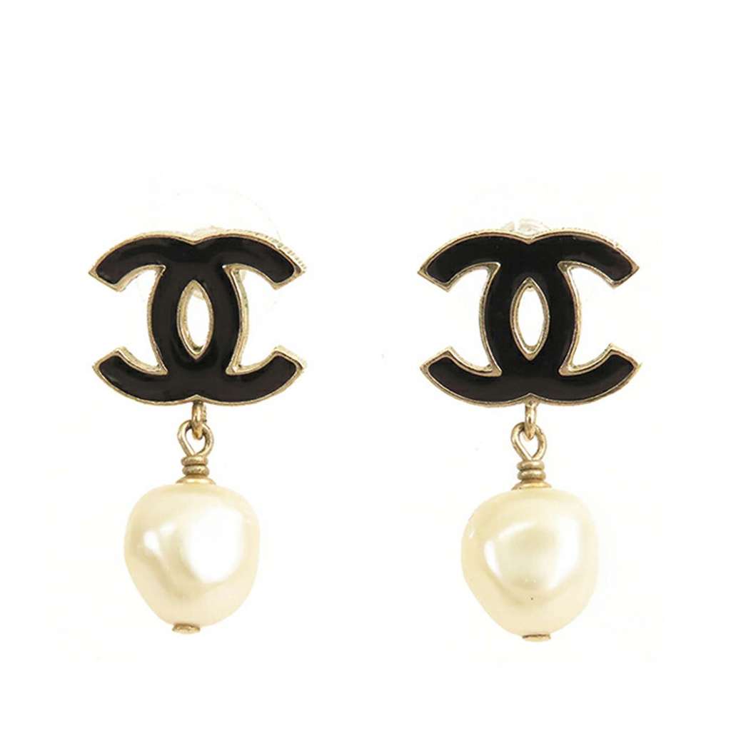 These earrings feature an enamel in gold-plated body with faux pearl charm, and a push back closure.