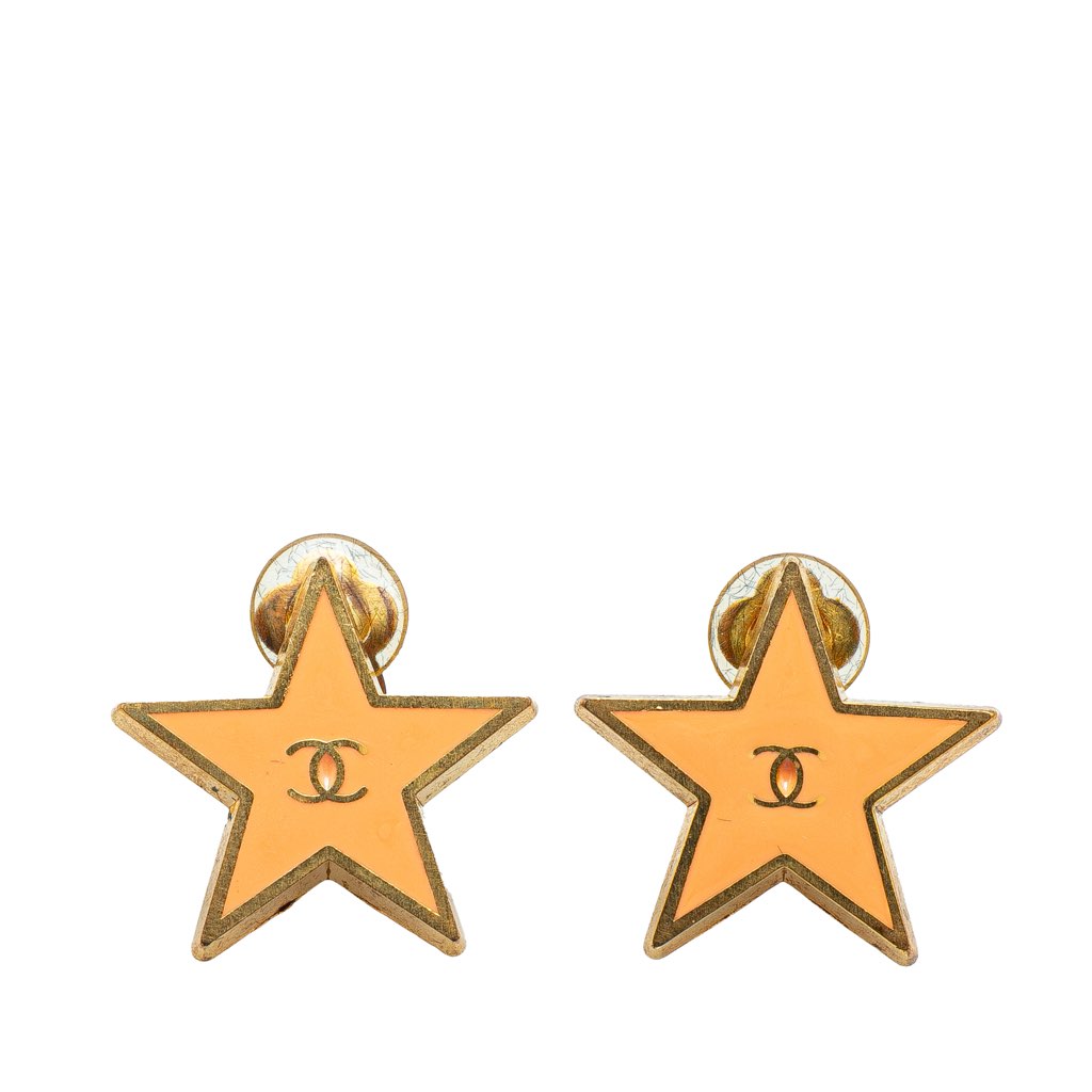 These earrings feature a gold-plated and enamel body and clip-on closure.