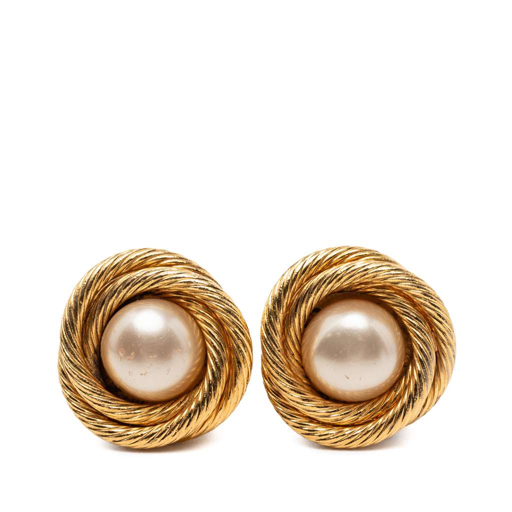 Chanel Gold Plated Faux Pearl Rope Twist Clip On Earrings Go