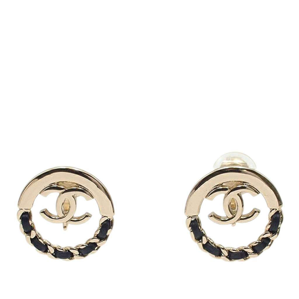 These earrings feature a gold-plated body with leather-woven details, and clip on closure.