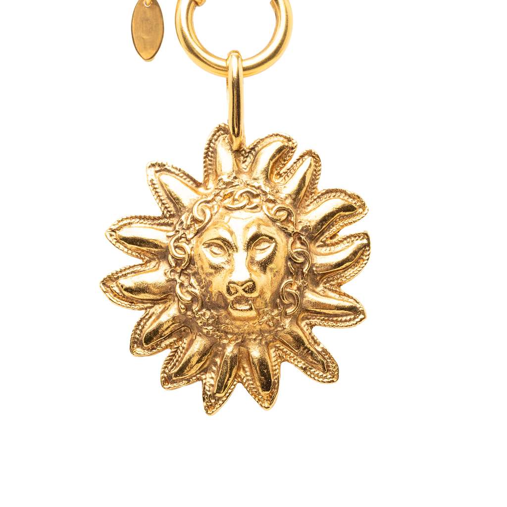 Chanel Gold Plated Leo Lion Sun Medallion Necklace Gold Meta