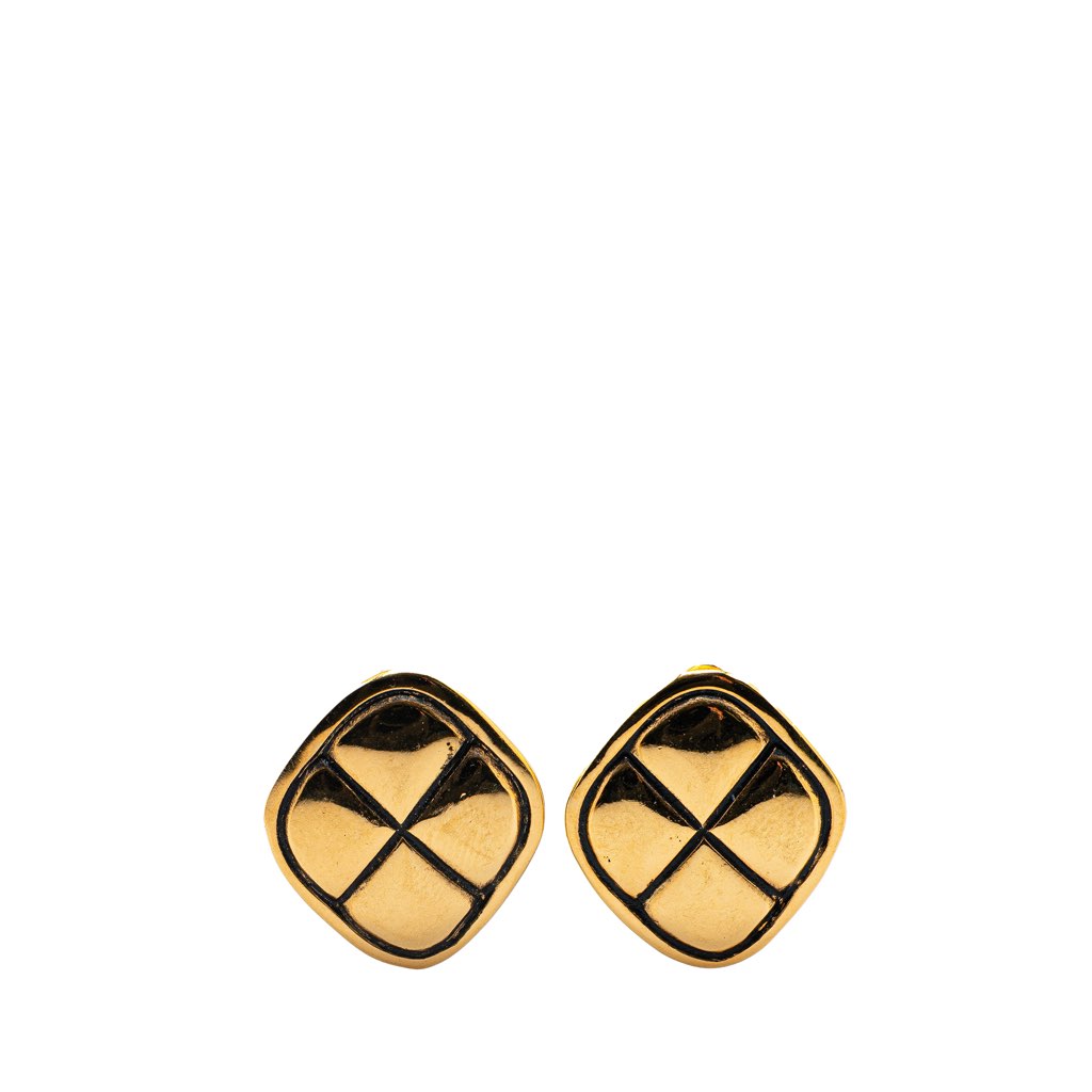 These earrings features a gold-plated metal body and clip-on closure.
