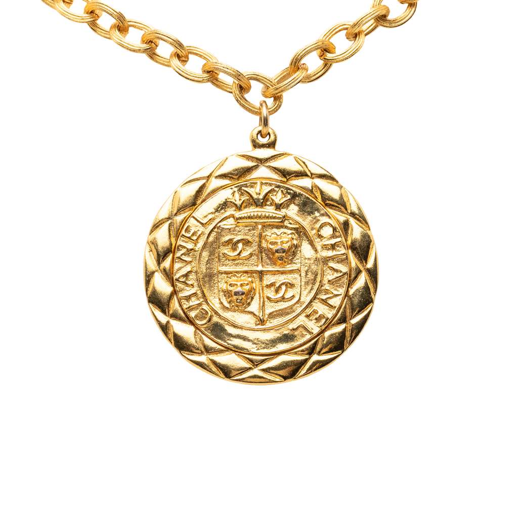 Chanel Gold Plated Medallion Lion Crest Necklace Gold Metal