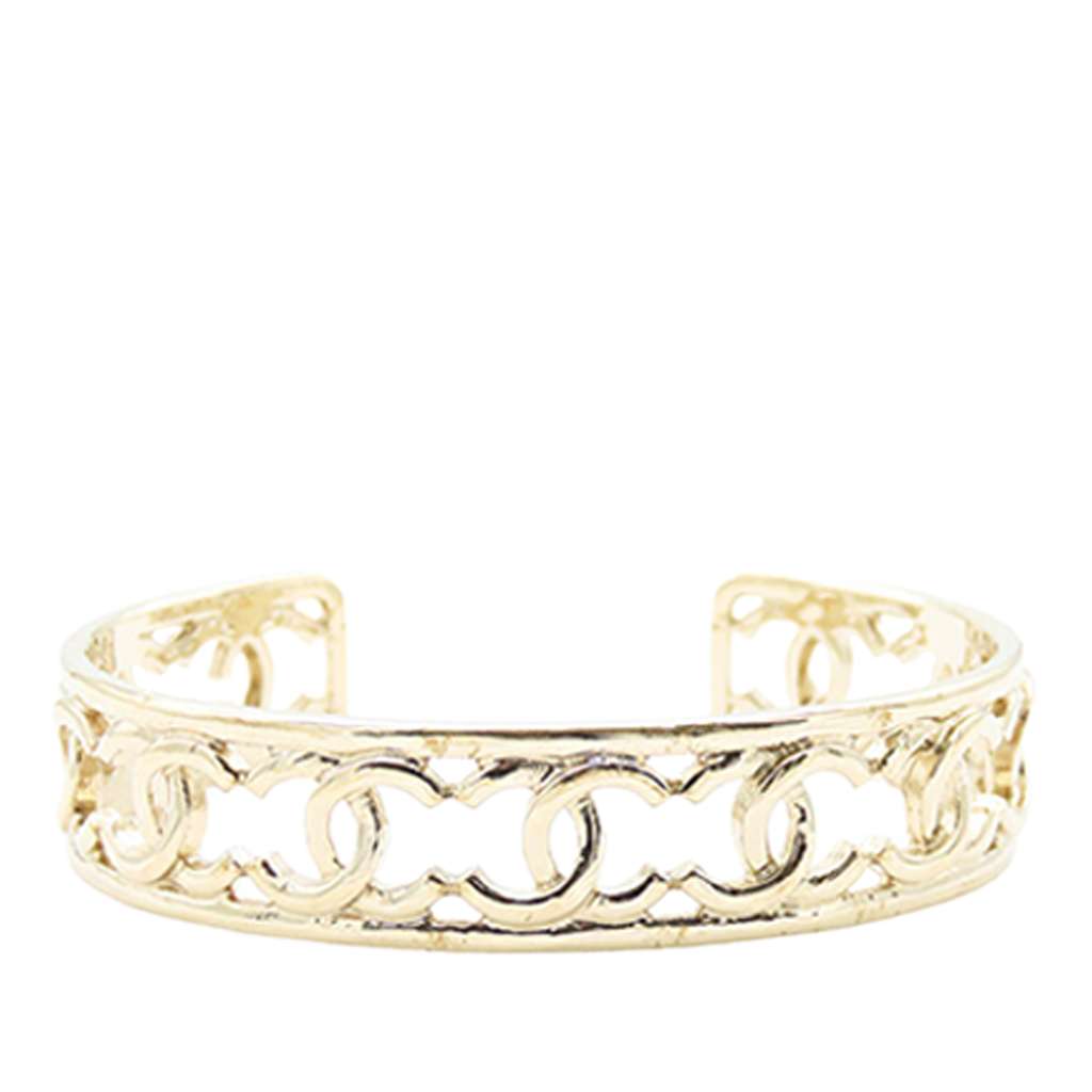 This bracelet features a gold-plated metal body with CC logo.