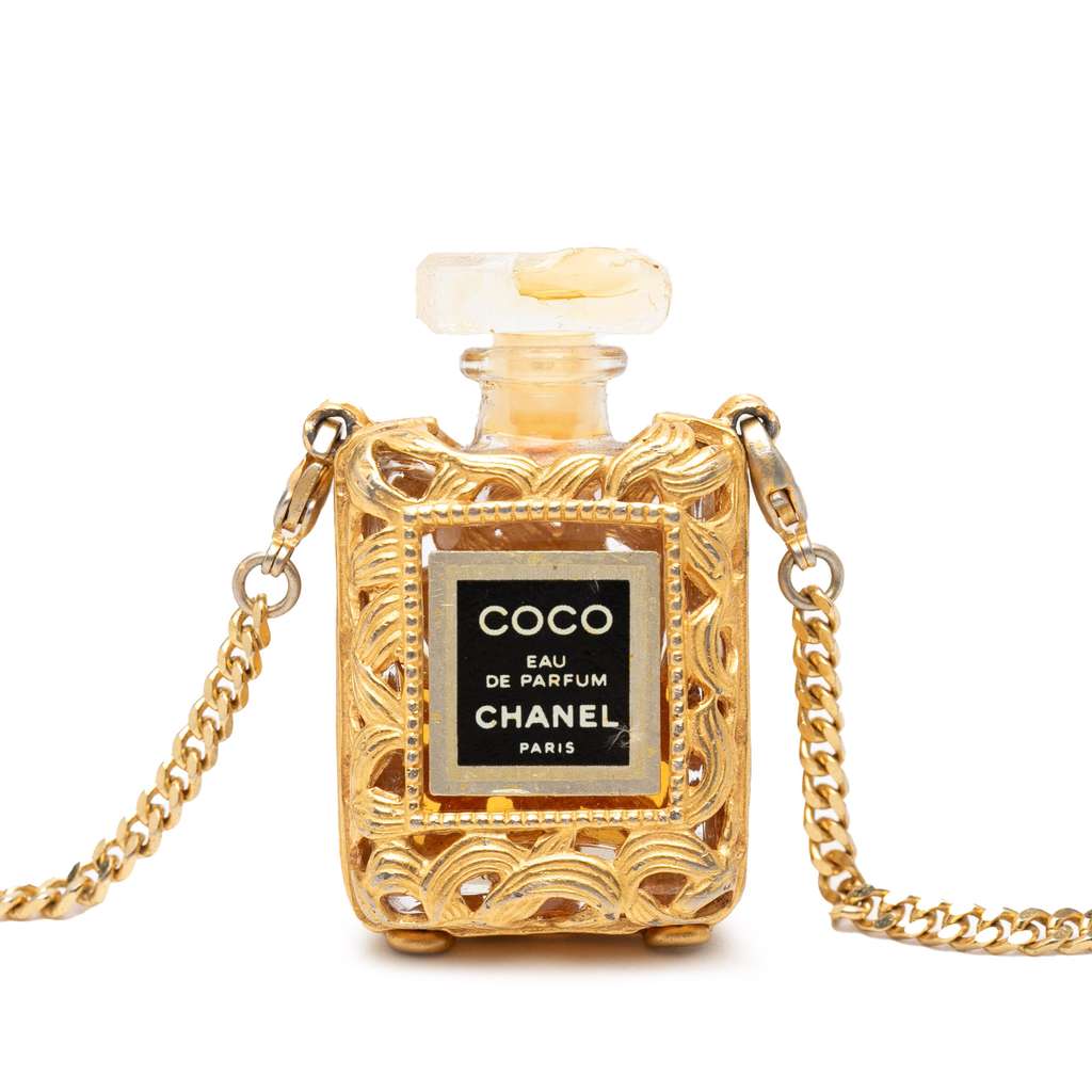 Chanel Gold Plated Perfume Bottle Necklace Gold Metal
