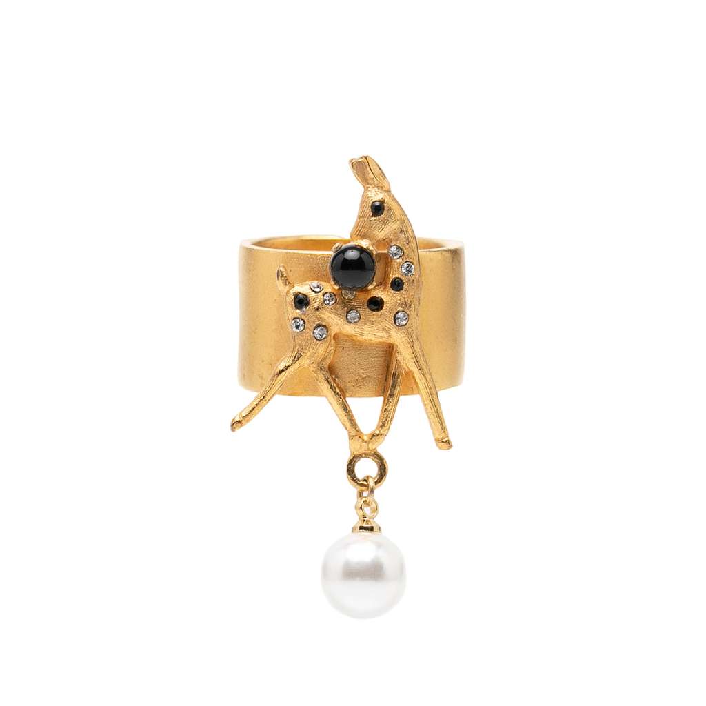 Gold Plated Rhinestone and Faux Pearl Bambi Ring