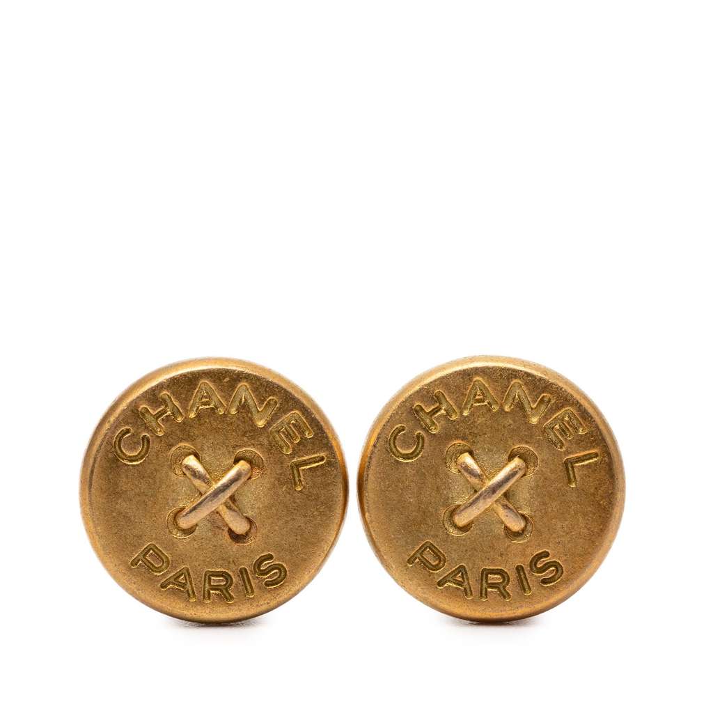 Chanel Gold Plated Round Button Clip On Earrings Gold Metal