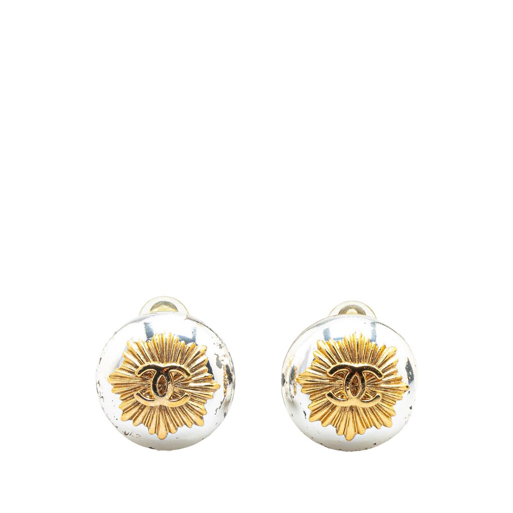 These earrings feature a gold-plated and silver plated body and clip-on closure.