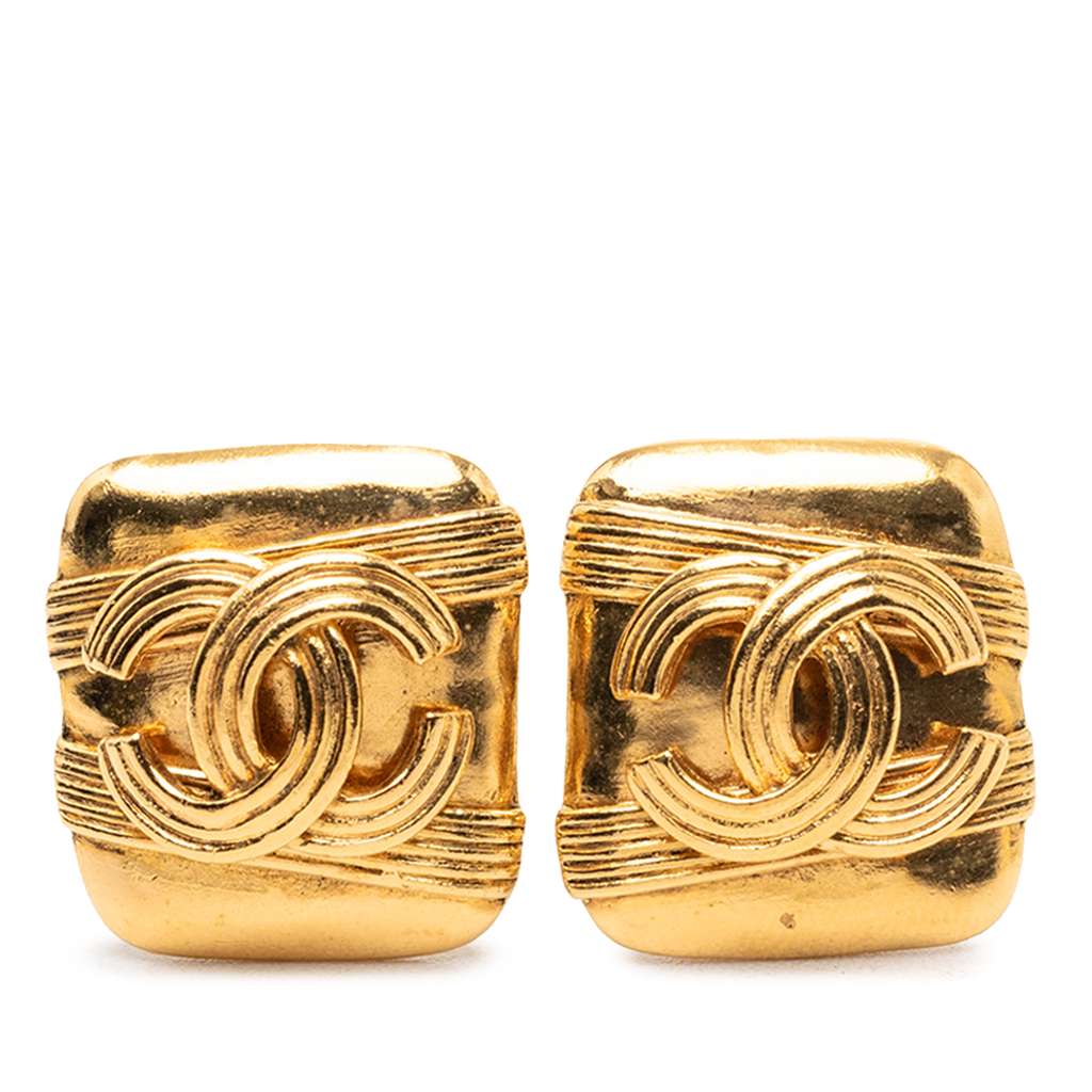 Chanel Gold Plated Wrapped CC Clip On Earrings Gold Metal