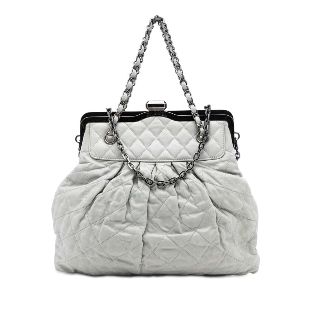 Chanel Iridescent Calfskin Chic Quilt Frame Satchel Grey X-L