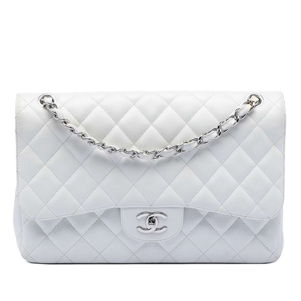 Chanel Jumbo Classic Caviar Double Flap White Large Leather