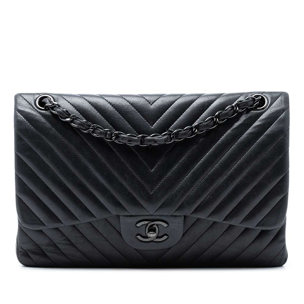 Chanel Jumbo Classic Chevron Lambskin So Black Double Flap B