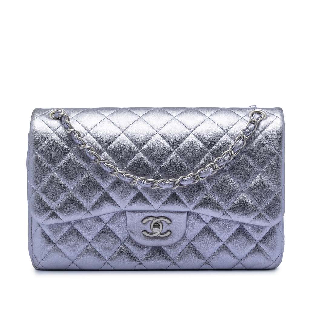Chanel Jumbo Classic Metallic Lambskin Double Flap Purple La