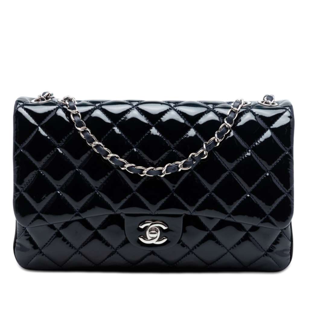 Chanel Jumbo Quilted Patent 3 Compartment Flap Blue Large Le