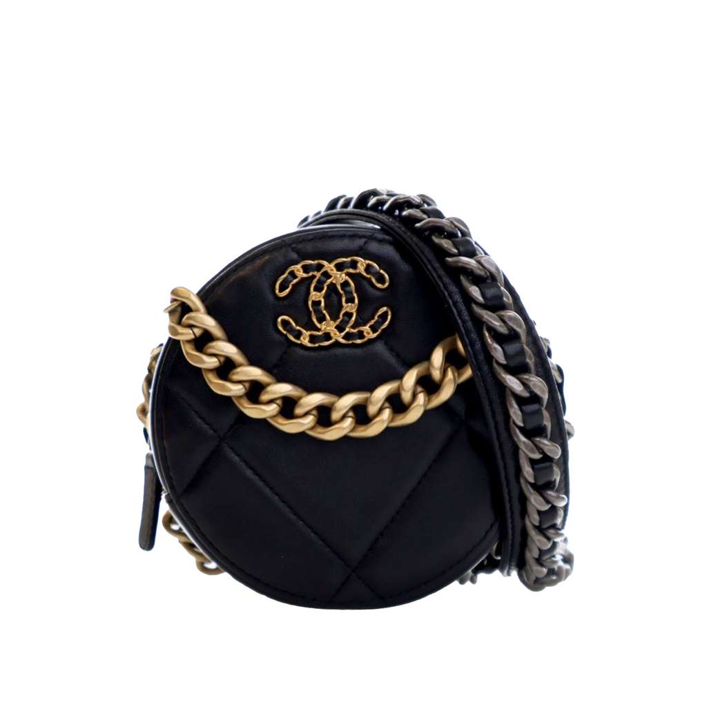 Chanel Lambskin 19 Round Clutch with Chain Black Mini Leathe