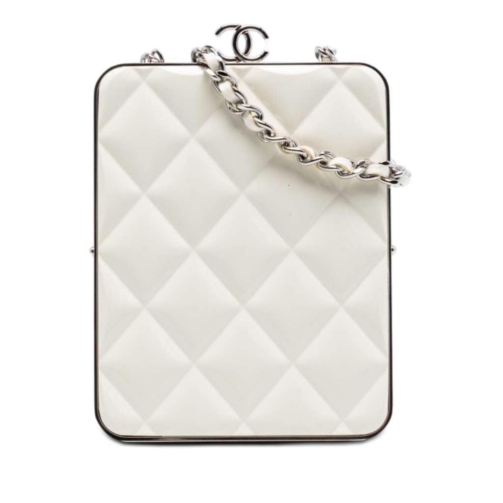 Chanel Lambskin and Acrylic Kiss Clutch with Chain White Min