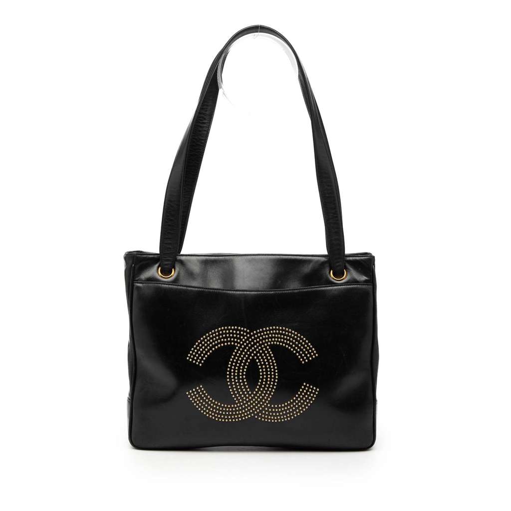 Chanel Lambskin CC Studded Logo Tote Black Large Leather